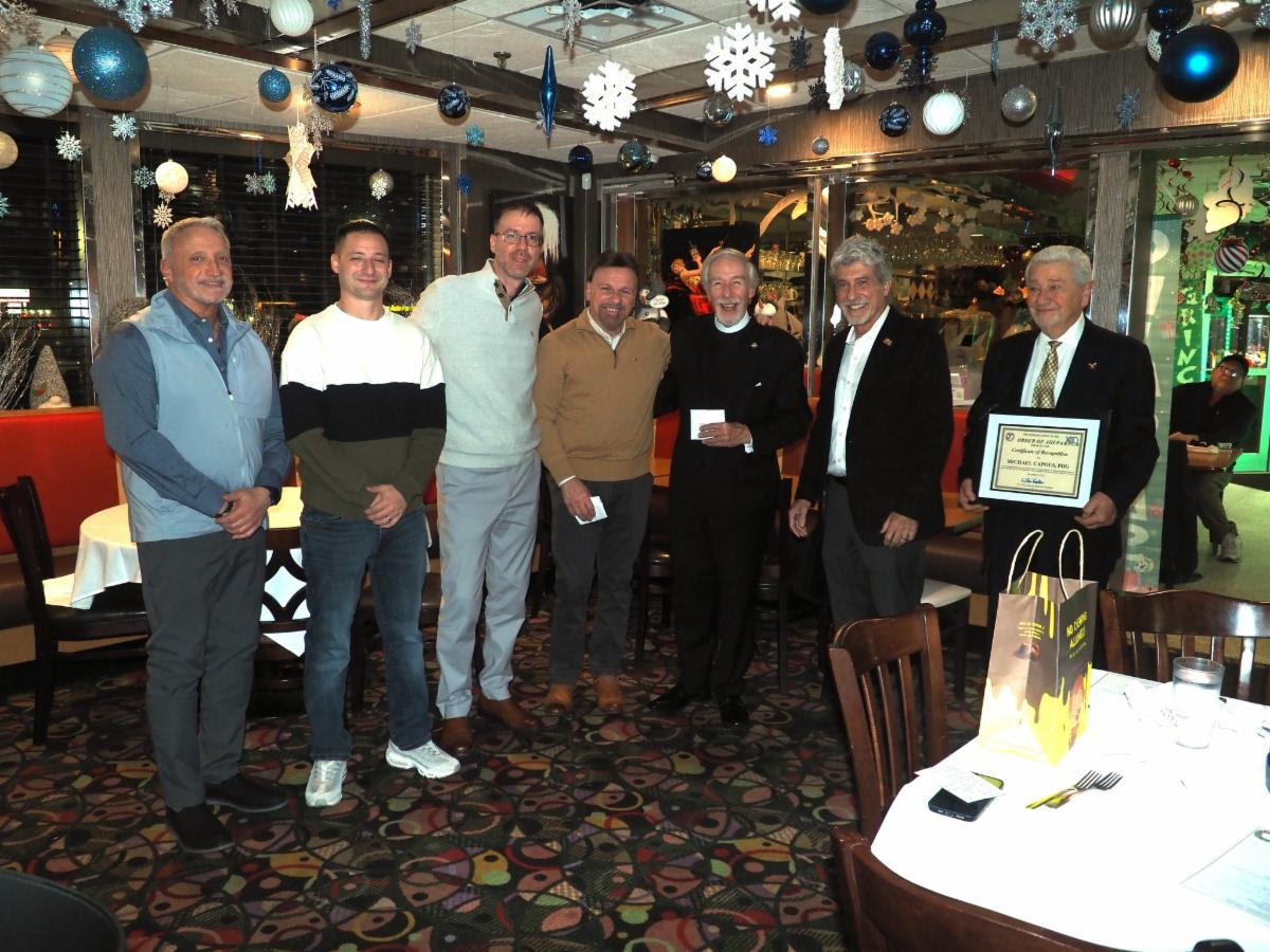 On December 6, 2025, Port Jefferson AHEPA Chapter 319 of Port Jefferson, NY, celebrated Christmas with members, spouses, and friends, as Chapter President George Kallas outlined a renewed focus for 2026 on strengthening fellowship through increased social engagement. Following dinner, members were recognized for their service, highlighted by Michael Capous, who received a 60 Years of Service pin and a Certificate of Recognition signed by Supreme President Chris Kaitson for his decades of leadership and extraordinary dedication to AHEPA. Reverend Demetrios Calogredes (Father Jim), the chapter chaplain and a key figure in the chapter’s reactivation, was honored with a special wreath pin, while several members received five-year service pins, with additional recognitions planned at the chapter’s January 7, 2026 Vasilopita celebration.