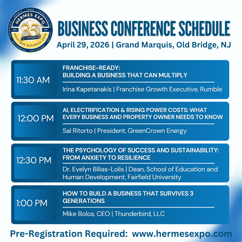 Old Bridge, NJ — On Wednesday, April 29, 2026, Hermes Expo International will present its highly anticipated Business & Leadership Conference and Masterclass Series at the Grand Marquis in Old Bridge, New Jersey, as part of its landmark 35th Anniversary program.